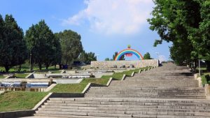 Данный комплекс расположен на месте бывшего села Вознесеновка. Эта достопримечательность предстанет перед вами в виде больших широких лестниц, которые ведут нас к широкой площади и парку. Между лестницами разместились шикарные фонтаны, украшенные в разные цвета радуги.